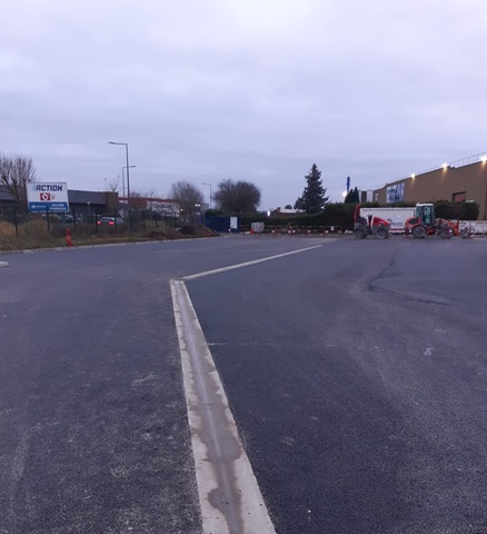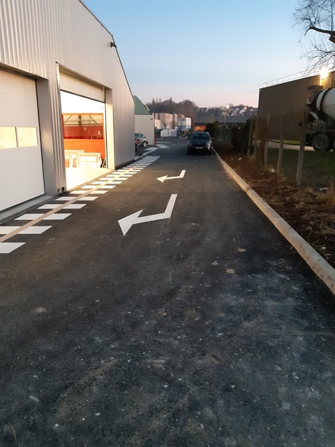 - Aire de livraison de 304 m² réhabilitée avec une structure en grave ciment de 30 cm et une fondation en cailloux et géotextile.