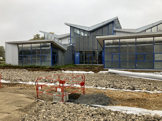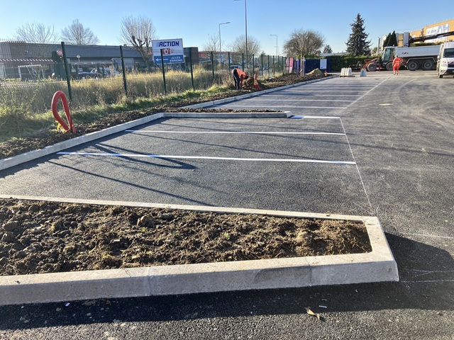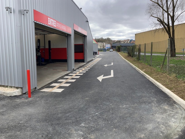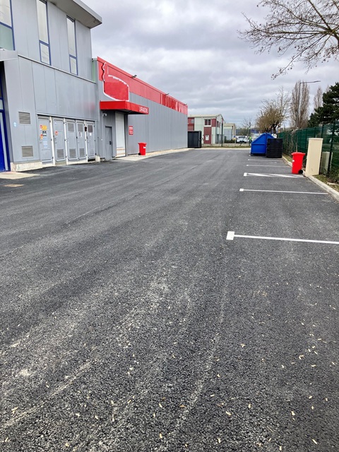 - Aire de livraison de 304 m² réhabilitée avec une structure en grave ciment de 30 cm et une fondation en cailloux et géotextile.