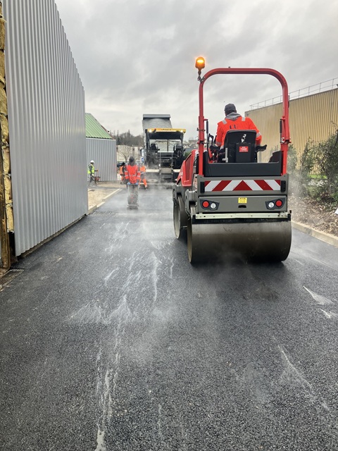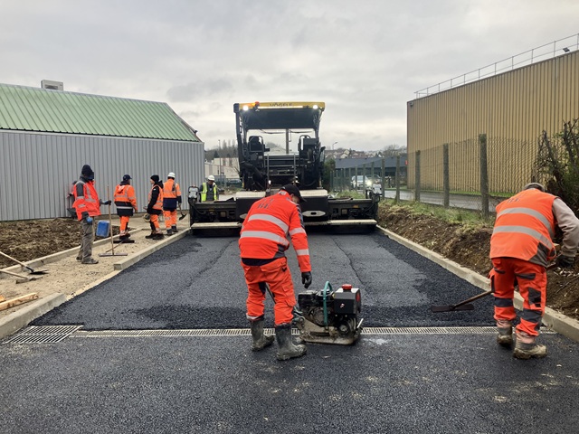 L’aménagement des voiries a été complété avec la pose d’un enrobé 0/10 noir appliqué à chaud sur une surface totale de 1289 m².